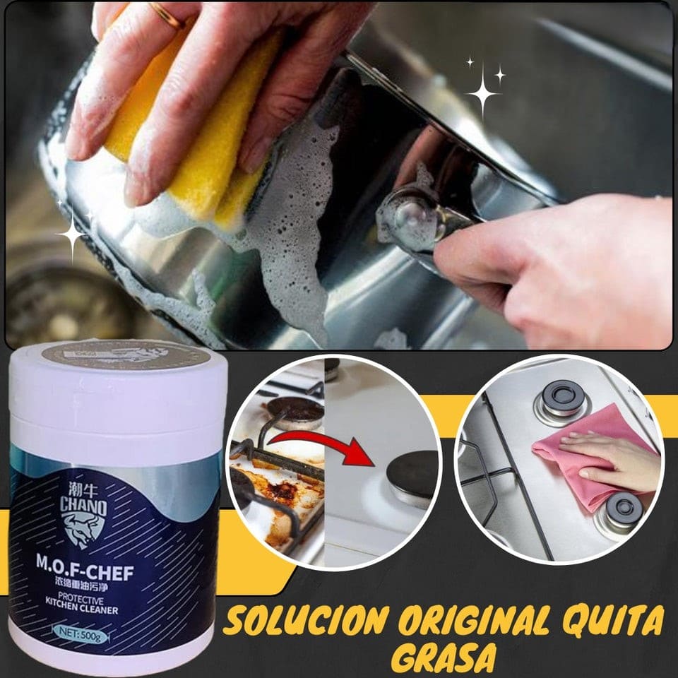 Con Chano Poderoso – Desengrasante de 500g, dile adiós a la grasa más difícil en ollas, azulejos, hornos y más… ¡sin esfuerzo y en minutos!